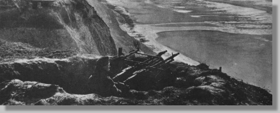 Nid de mitrailleuses jumelées installé sur le haut d'une falaise.